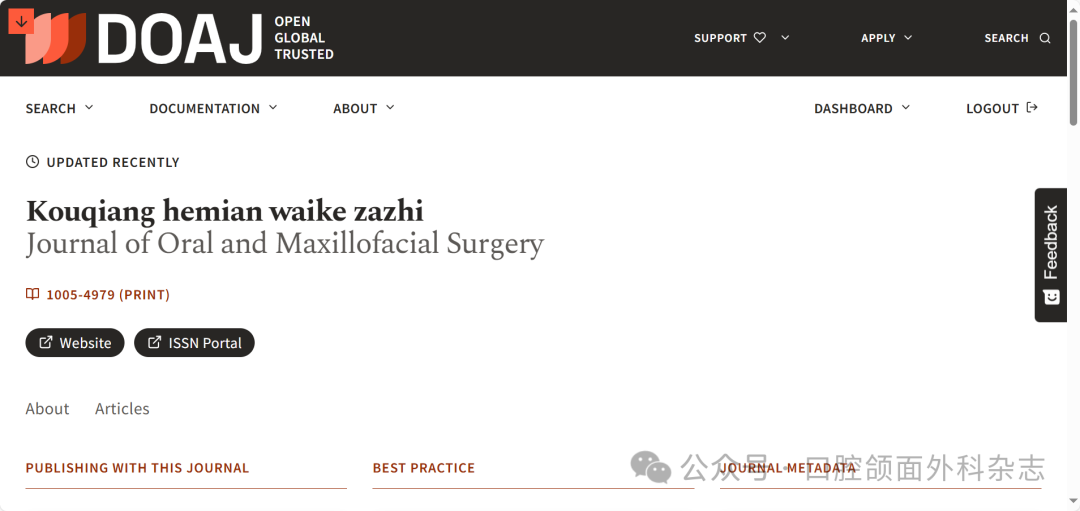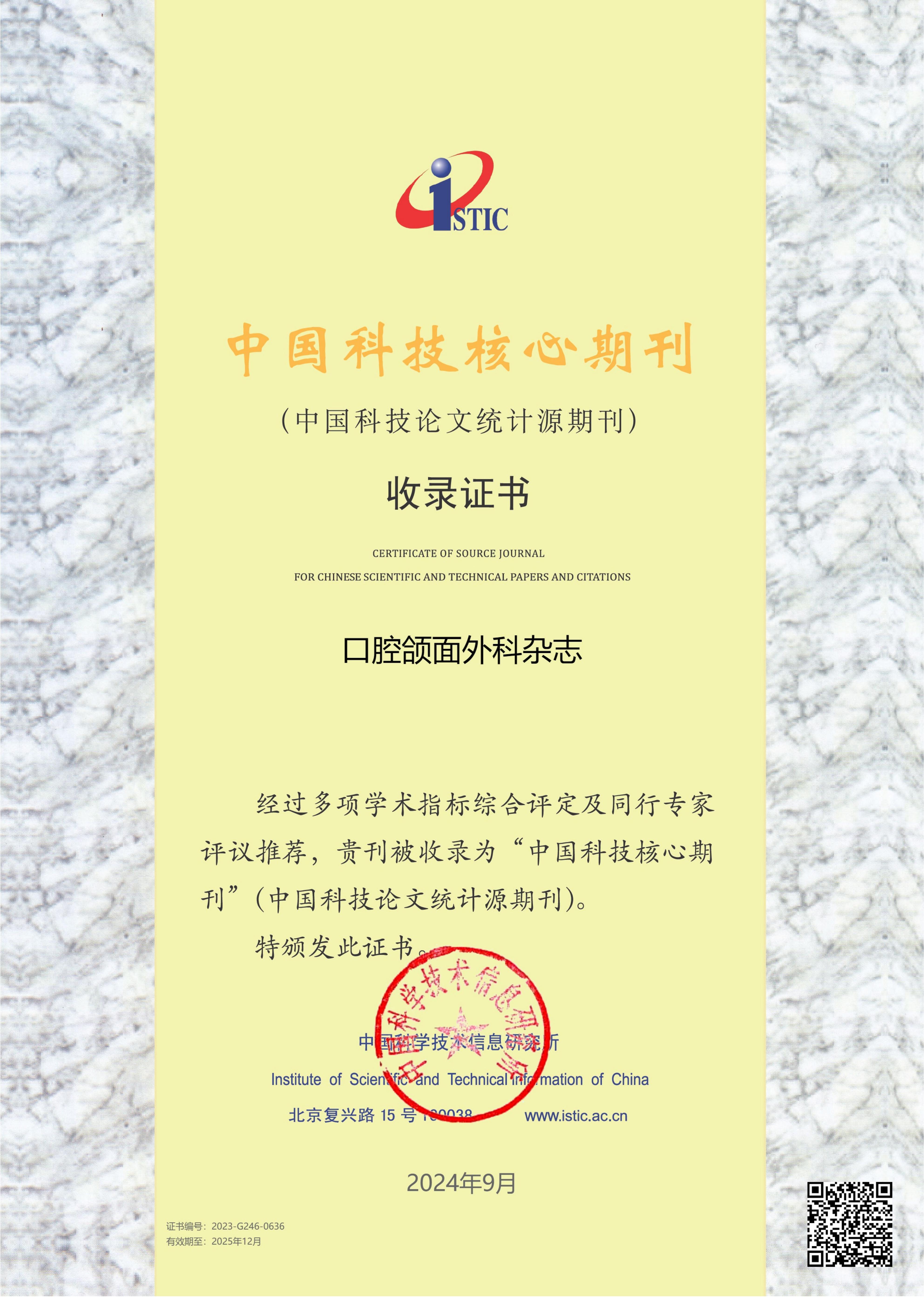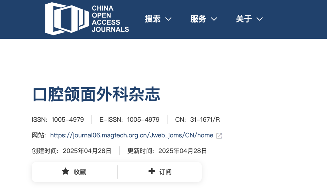 《口腔颌面外科杂志》持续获得国内权威评价体系的认可,于2025年再次被“中国科技核心期刊”(中国科技论文统计源期刊)收录。
